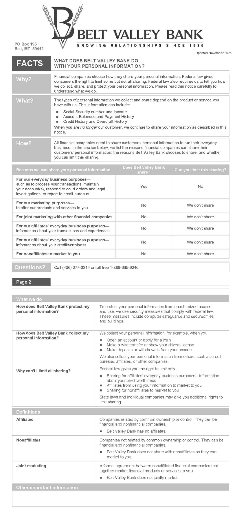 111 Castner Street P.O. Box 196 Belt, MT 59412 • (406)277-3314 • toll free (888)665-9246